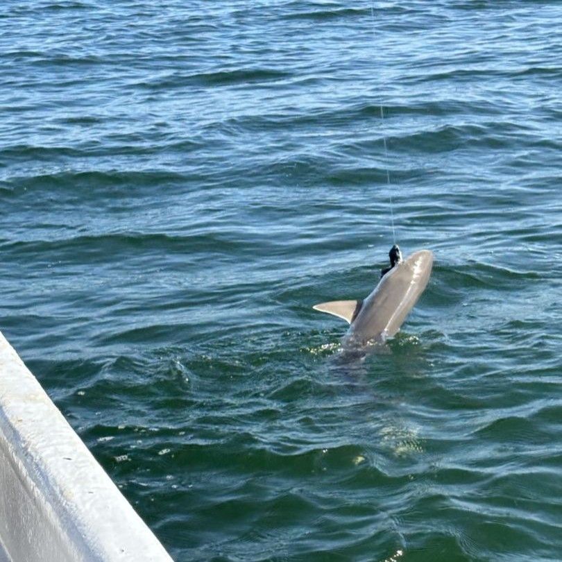 Blacktip Sharks are the show-offs of the shark world, famous for their spectacular aerial displays when hooked. These 4-6 foot speedsters love shallow water around structure and are most abundant from spring through fall. When you hook a blacktip, get ready for multiple jumps and blistering runs that'll test your reflexes and drag settings. They're aggressive feeders and often the first species to find your bait, making them customer favorites for their consistent action and acrobatic fights.